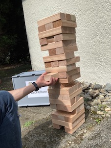 Zur Sicherheit steht der Turm untern auf 2 Steinen, die nicht genommen werden dürfen.